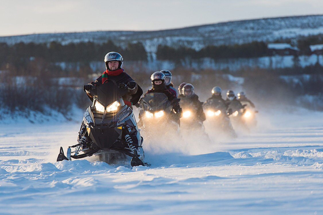 When everyone is ready and wrapped in many layers of warm clothing, our experienced guides will instruct you on how to operate the snowmobile. You decide whether you wish to start out as a driver or as a passenger sitting behind one of your friends. Soon we’ll be speeding away from the village and out into the vast winter wilderness!
