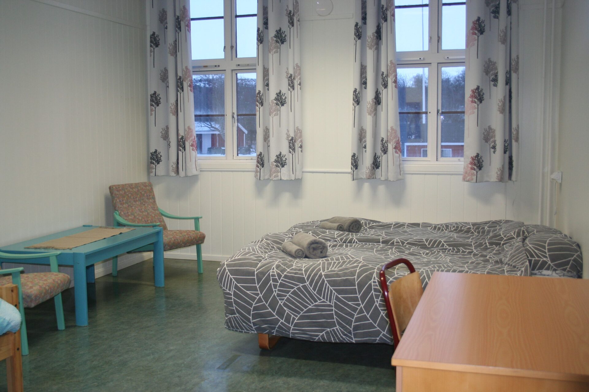 NOK 1200,- for double room with shared bathroom